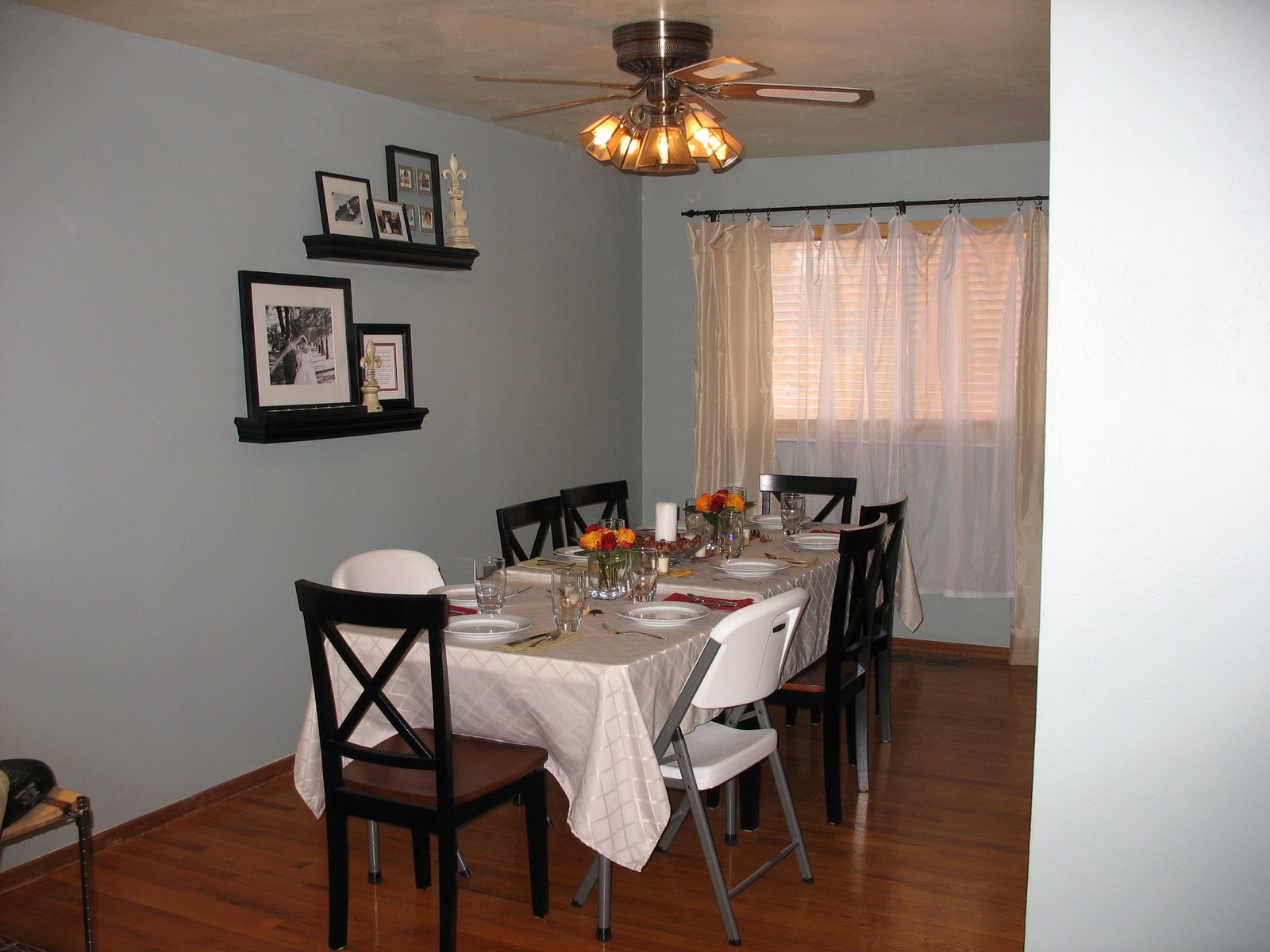 Sadly, we have no before pictures of the dining room. (I know. You all are SO disappointed!) Try to envision the yuckiness in your head: like the living room (see post below this one), ugly old dining room table, an oddly placed curio, and cat hair galore. Oh yeah, and more doilies.